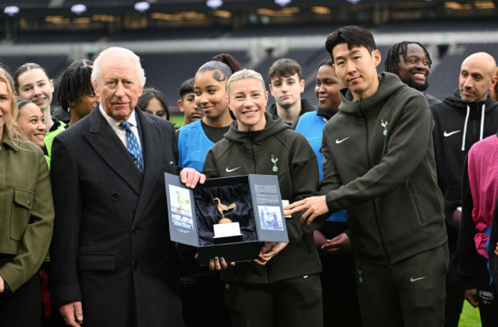위 기념사진은 토트넘 주장 손흥민, 여자팀 주장 배서니, 찰스 3세과 함께 촬영하였다.