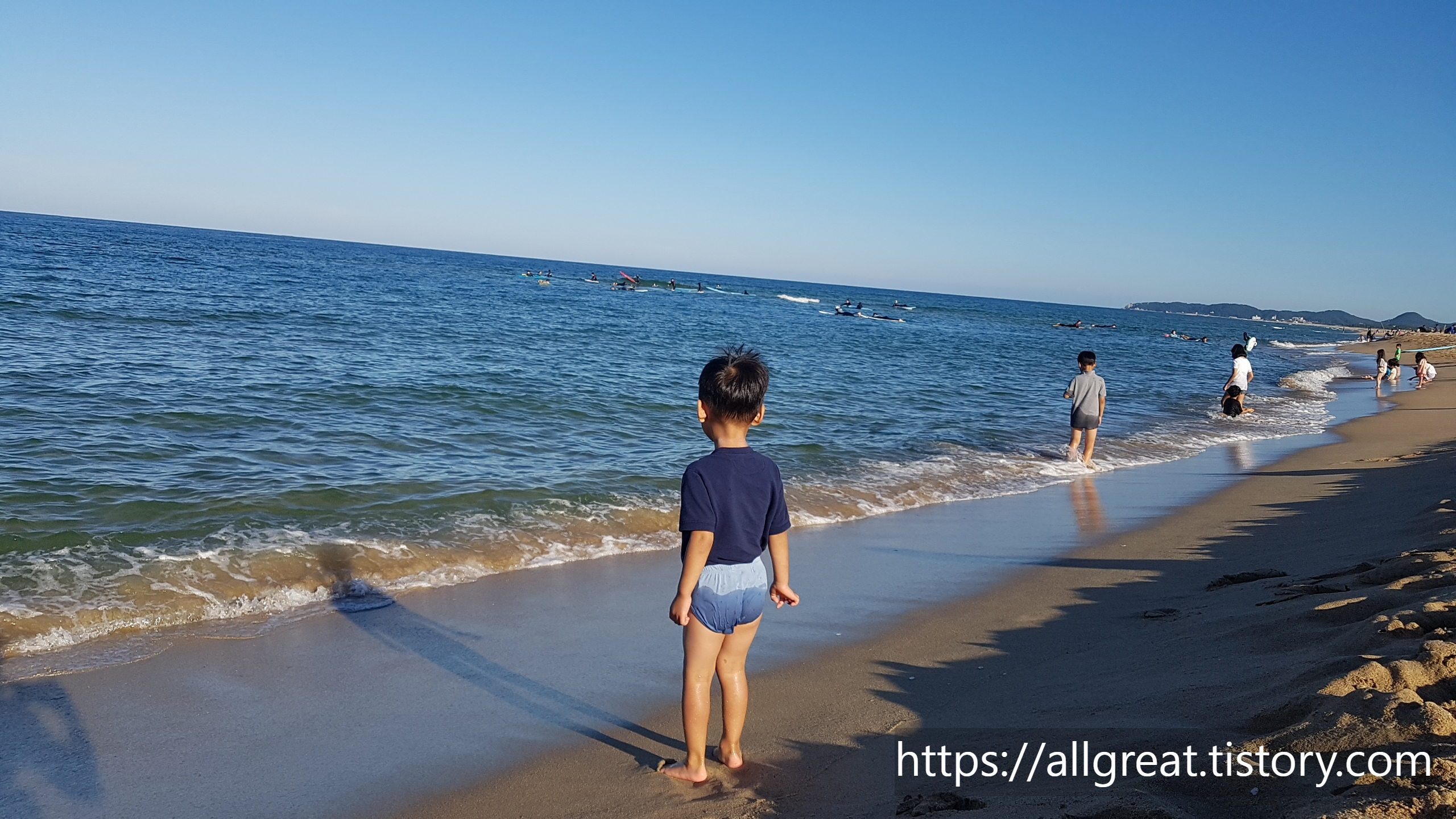 반나절을 쉬지 않고 바닷가를 뛰 논 아이들..