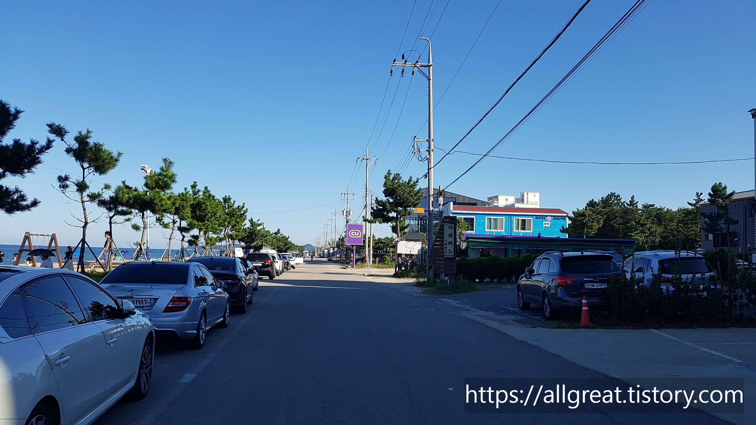 해변 백사장을 따라서도 길게 주차라인이 있다.