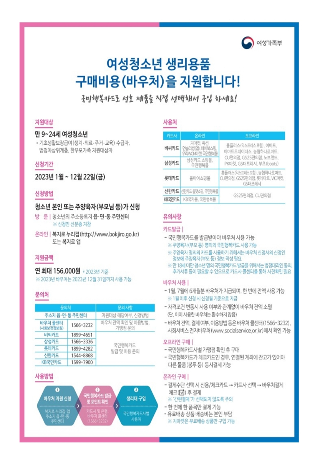 만 9~24세 여성청소년(여학생), 기초생활보장급여 수급자, 법정차상위계층, 한부모가족 지원대상자