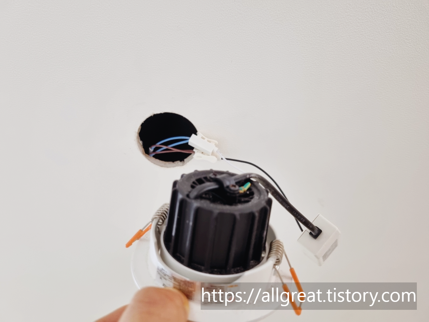 위에서 언급하였듯이, 천장에 붙어 있는 기존의 고장난 다운라이트를 뺄때 클립에 손이 다칠 수 있으니, 반드시 살살 천천히 잡아당기면서 클립의 위치를 확인한 후 잡아 당시길 바랍니다!