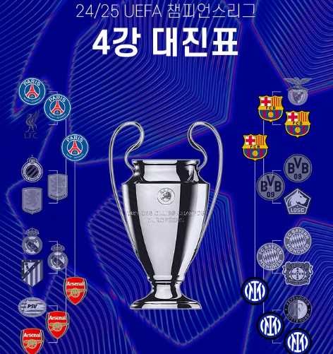 2025 UEFA 챔피언스리그(챔스) 4강 대진표가 확정되었다.