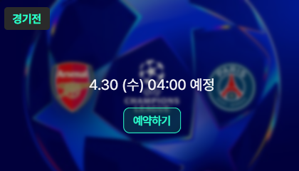 스포티비나우에서는 2025. 4. 30.(수) 04:00에 치러지는 아스날 : 파리셍제리망 챔스 4강전을 미리 경기시청 예약을 할 수 있다.