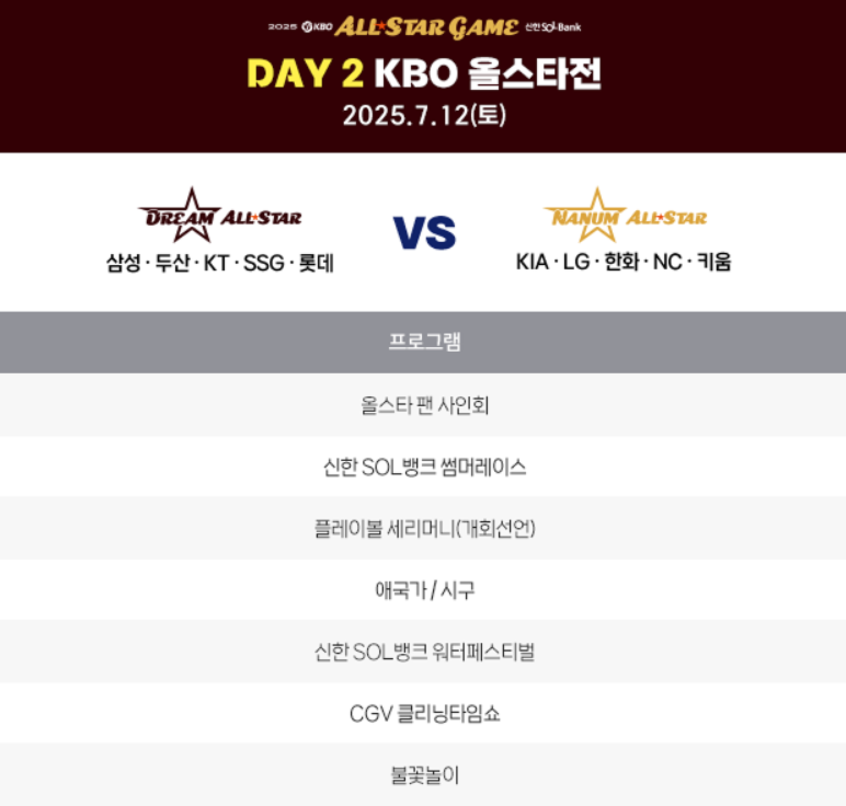 2025 KBO 올스타전 일정 프로그램