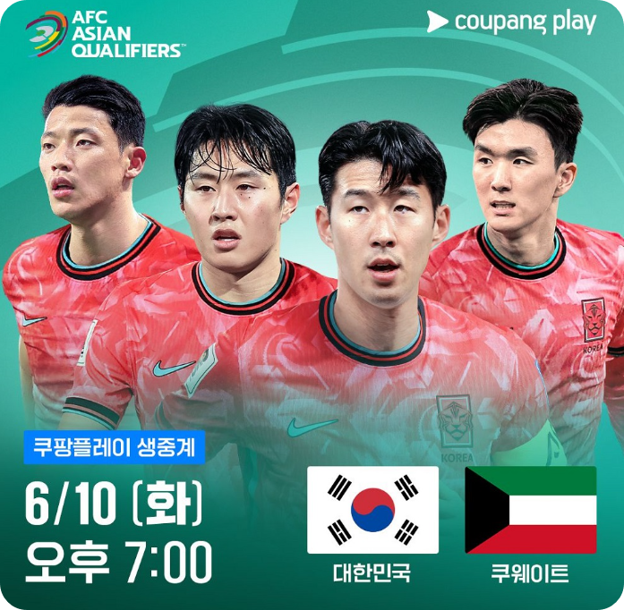 쿠팡플레이를 통해서 실시간 라이브로 쿠웨이트 대한민국 축구 월드컵예선 경기를 관람할 수 있다.