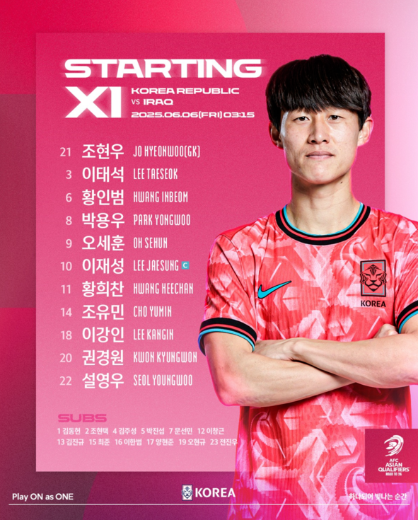 벤치 멤버로는 김동현, 조현택, 김주성, 박진성, 문선민, 이창근, 김진규, 최준, 양현중, 오현규, 전진우가 대기할 예정이다.