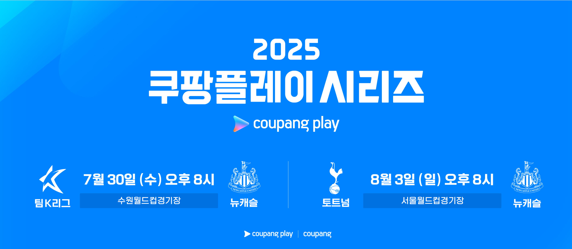 2025 쿠팡플레이 시리즈 팀K리그 뉴캐슬 토트넘 전 경기는 오직 쿠팡 와우 회원만 예매 가능하다.