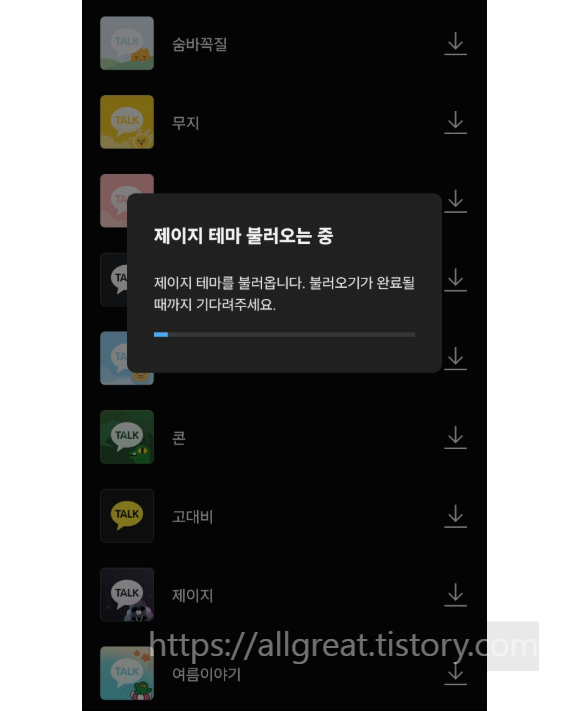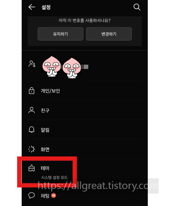 저는 카카오톡 설정 - 테마 안에서 '제이지 테마'를 선택했습니다.