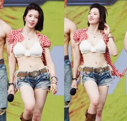 권은비는 노래를 부르면서, 중간에 화끈하게 상의를 풀어헤치고, 브래이지어(여성속옷)로 보아도 무방한 브라탑 노출이 심한 옷차림으로 무대를 더욱 뜨겁게 만들었다.