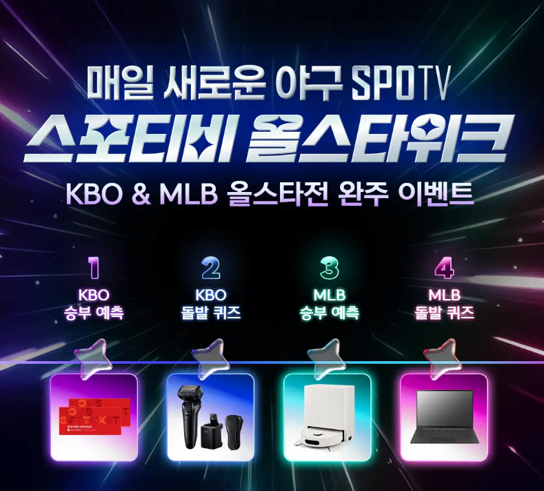이번 한국 프로야구와 함께 MLB 메이저리그 올스타전 모두 라이브로 중계하는 스포티비는 승부예측 퀴즈 이벤트로 풍성한 경품 선물로 제공할 예정이다.