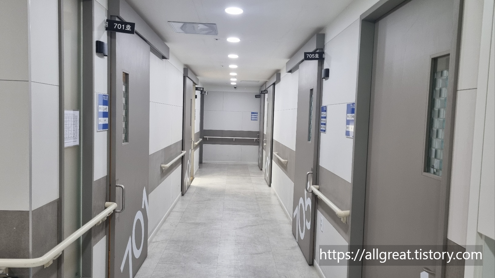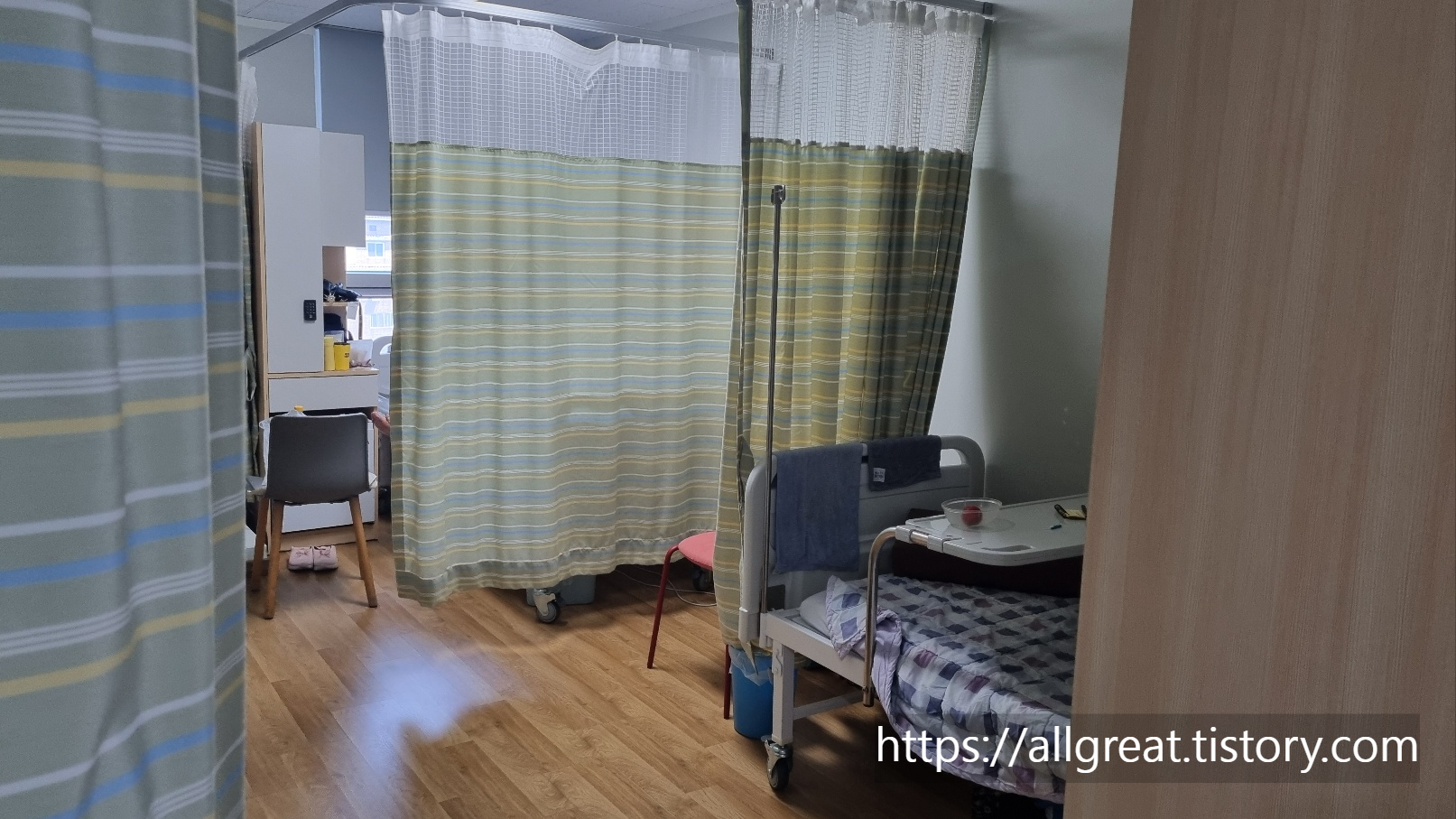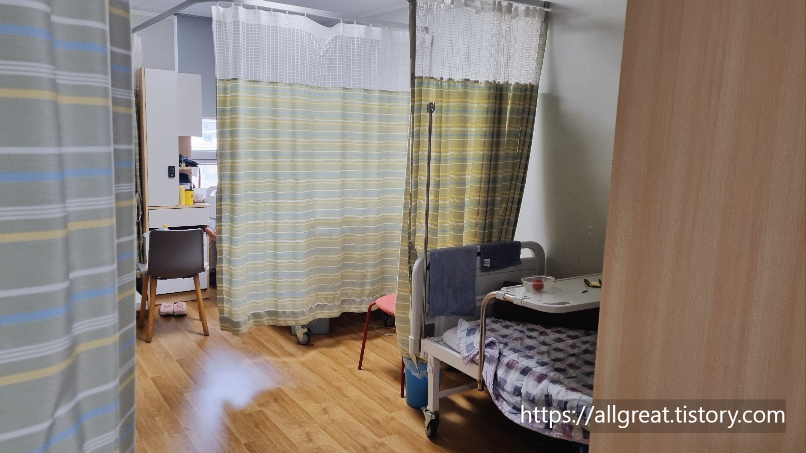 교통사고로 입원했었던 3인실의 모습입니다. 7층 입원실은 1인실부터 4인실까지 다양하게 갖추고 있습니다.