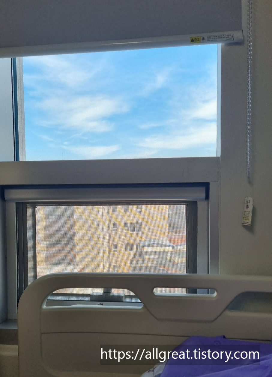 보행자 교통사고로 경히DS한방병원에 입원하셨던 지인이 침대에서 바라보이는 창입니다.