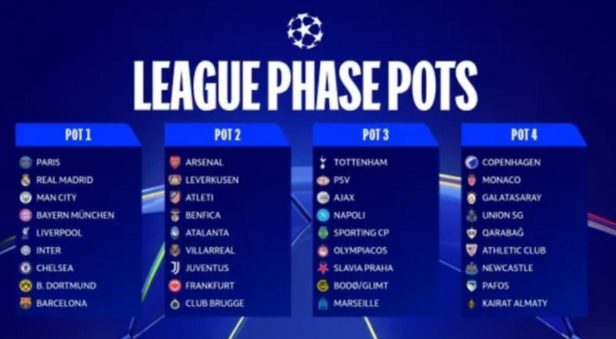 2025-2026 챔피언스리그 조추첨 결과 pot1~4