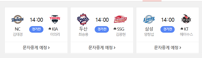 엔씨 : 기아 / 두산 : SSG / 삼성 : KT