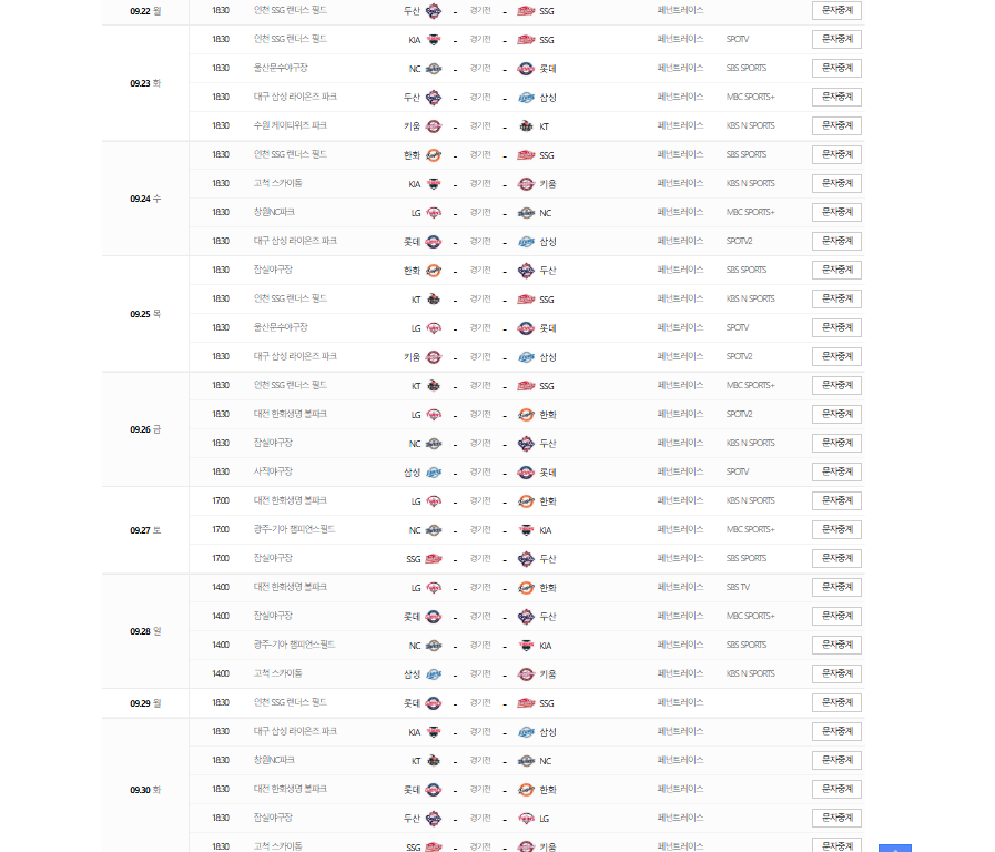 9월 21일 일요일 오늘 프로야구 경기일정은 어떻게 될까?