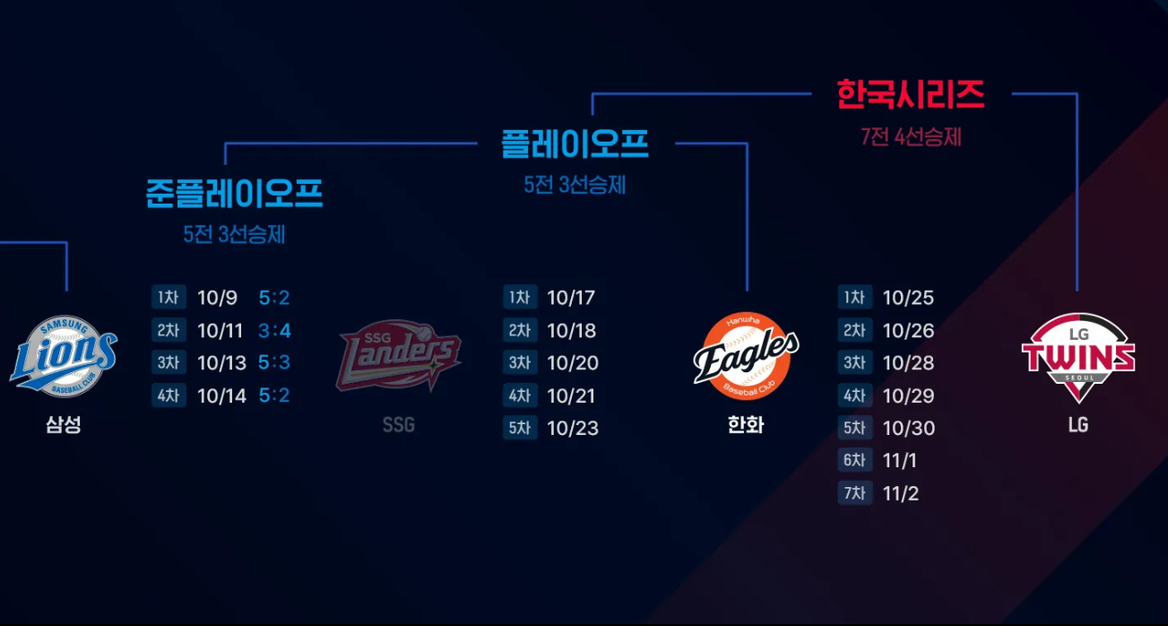 플레이오프에서 승리한 팀은 한국시리즈에 올라간다. 한화 또는 삼성 중 어느 팀이 올라갈지 모르겠지만, 상대팀은 정규리그 1위 우승팀 LG이다.