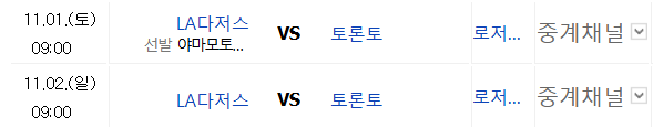 2차전 : 10월 25일 09:00 토론토 로저스센터