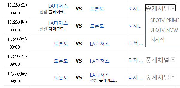 1차전 : 10월 25일 09:00 토론토 로저스센터