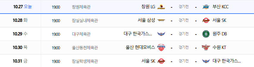 프로농구 경기일정 10월 11월