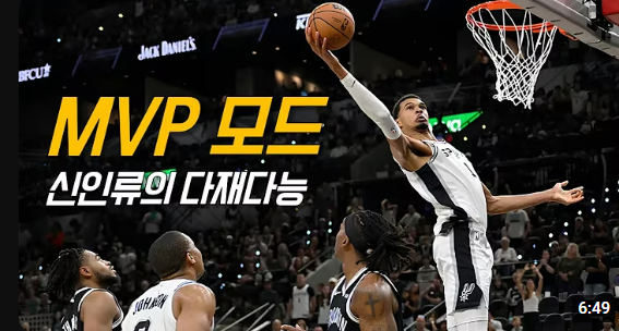 NBA에서도 장신에 속하는 키임에도 360도를 회전하며 레이업을 넣는 웸반야마의 득점력이 무시무시하다.