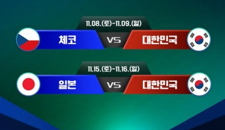 체코전은 당장 내일부터 이틀간 진행되며, 한일전 야구 평가전은 11월 15일 ~ 16일 이틀간 열린다.