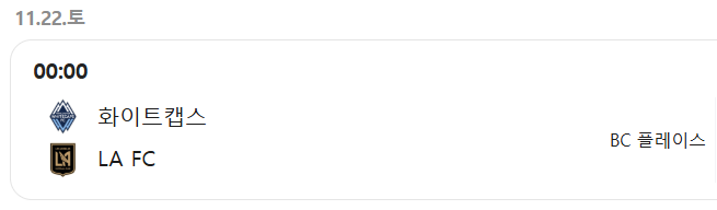이제 11월에 남은 손흥민 경기일정은 단 1경기다. 11월 22일(토) 예정된 화이트캡스전이다.