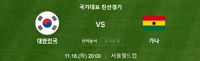 이번 가나전을 승리하여 다가올 월드컵 조 추첨 포트2 진입의 유리한 고지를 밟을수도 있기 때문에 반드시 한국 대표팀이 승리하길 응원합니다.
