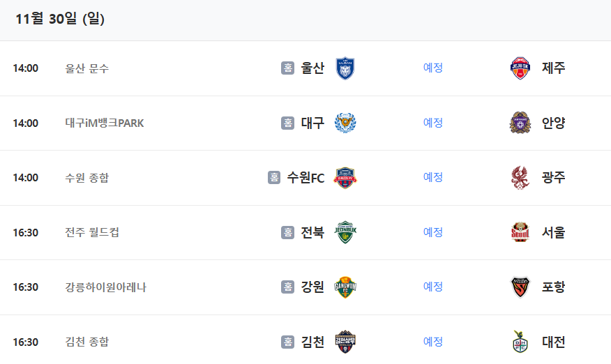 2025 k리그 프로축구 마지막 정규리그 경기일정