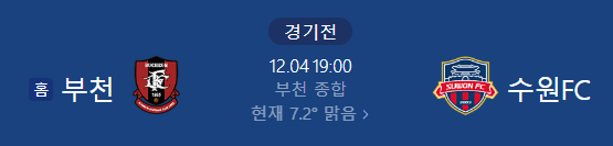 | 수원 부천 경기일정 K리그 수원FC 부천FC 승강PO, 중계 방송 채널 (0) | 2025.12.03 |