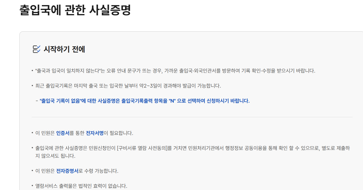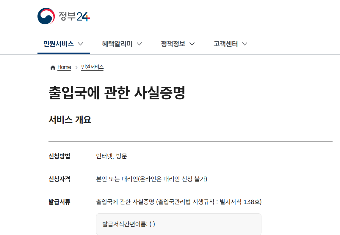 출입국에관한사실증명 또는 출입국사실증명서는 정부24 홈페이지에서 무료로 간편하게 발급받을 수 있습니다.