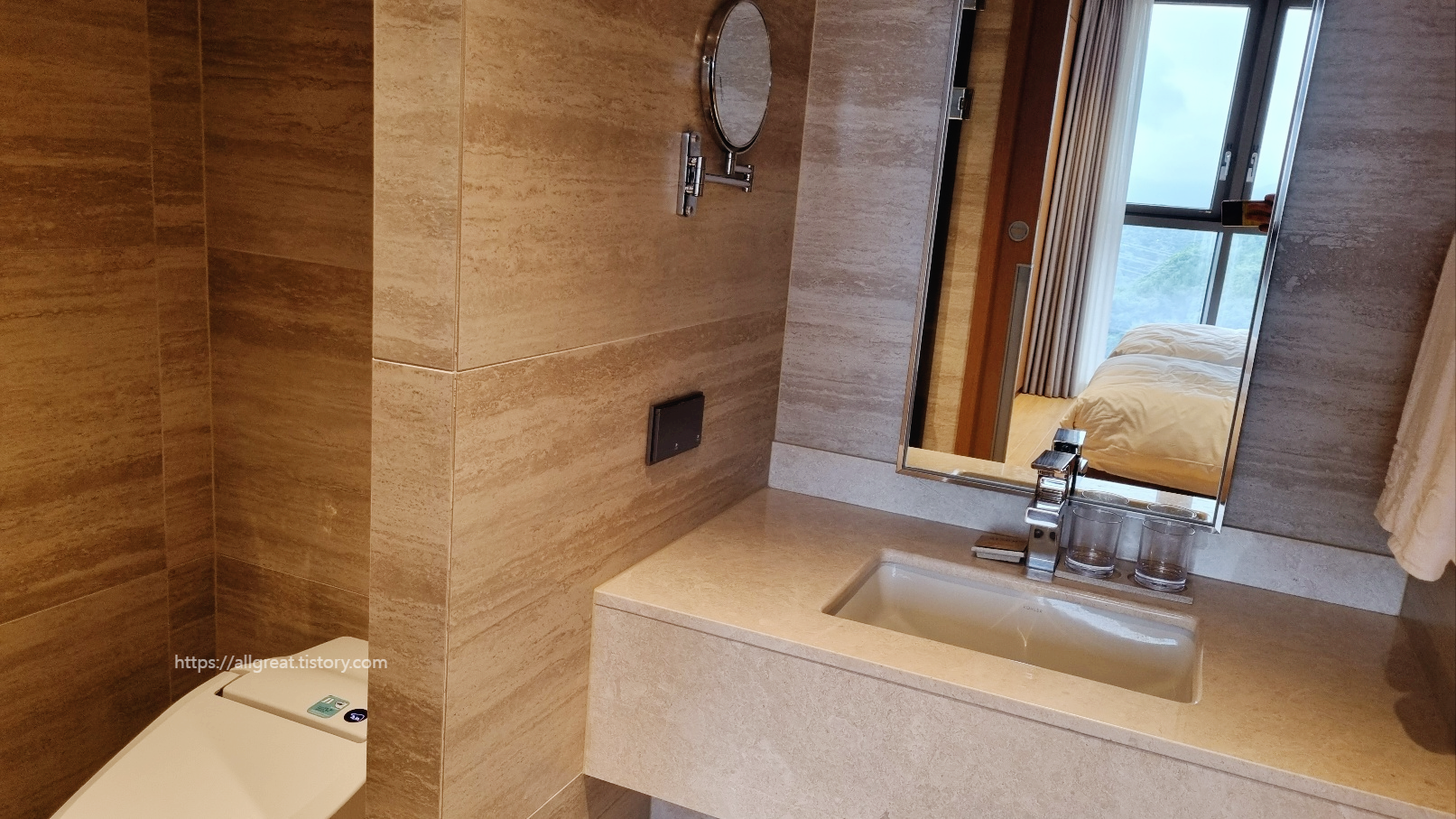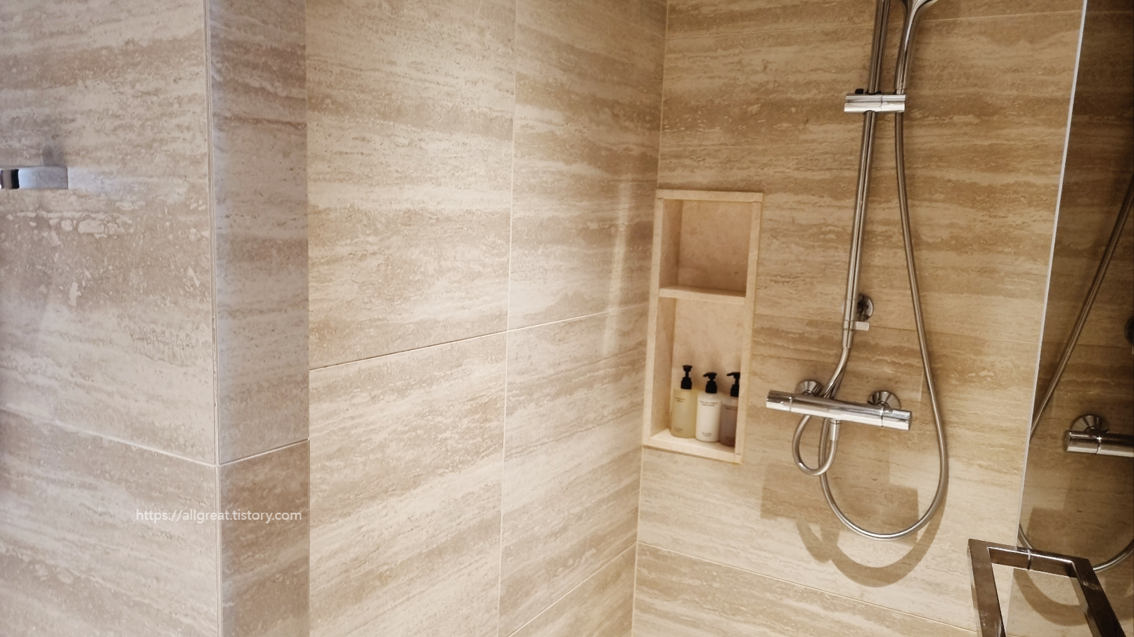 호텔에 처음 입장할 때 사진을 찍었어야 했는데, 이미 짐을 다 풀고 생활하던 중간에 사진을 찍어서 욕실 화장실 사진을 잘 못 찍었습니다.