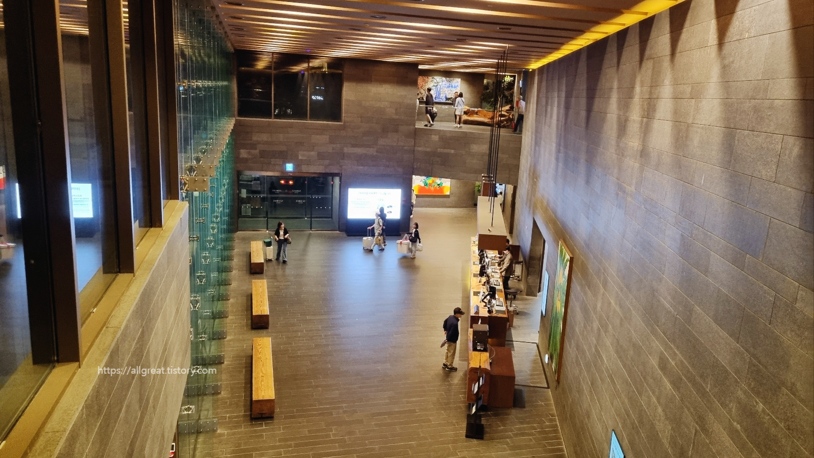 레스트리 1층 로비에는 체크인 아웃을 돕는 카운터 안내데스크, 베이커리카페 빵집(꼭 이용 추천!), 아담한 도서관, 그밖에 웨딩홀 등이 있습니다.