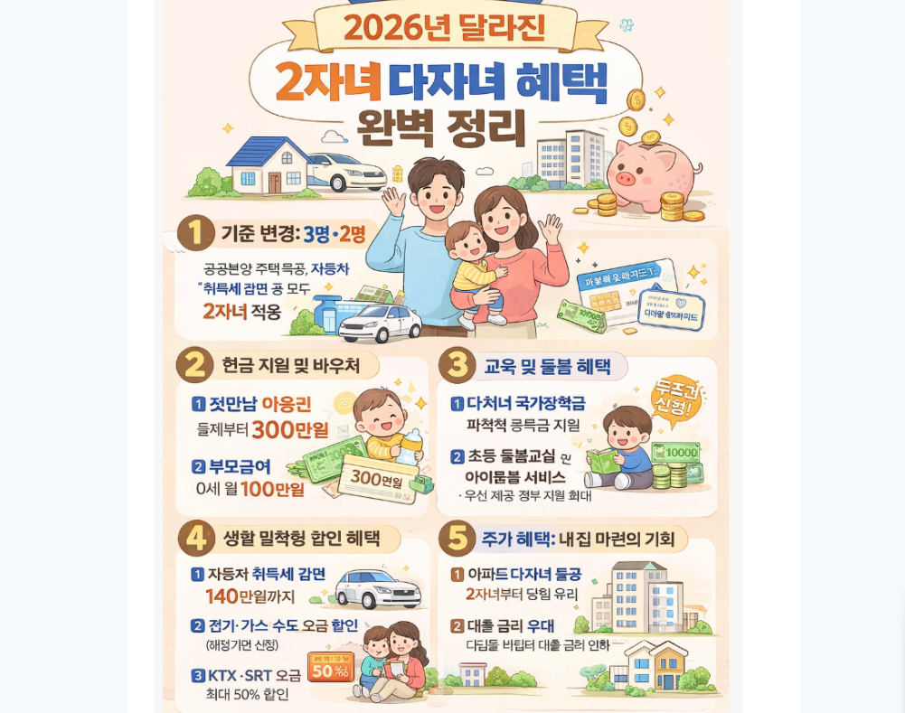 2026년 다자녀 혜택 2자녀 할인 정보 모음