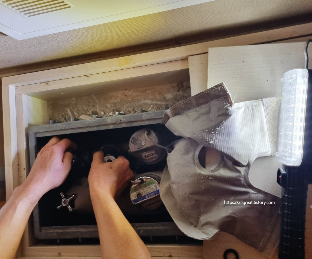 상식적인 이야기일수 있으나, 간혹 이를 간과하여 물난리를 일으키는 경우가 있다고 하니, 감압밸브 교체작업 전에 반드시 수도 중간밸브를 잠그시길 바랍니다.