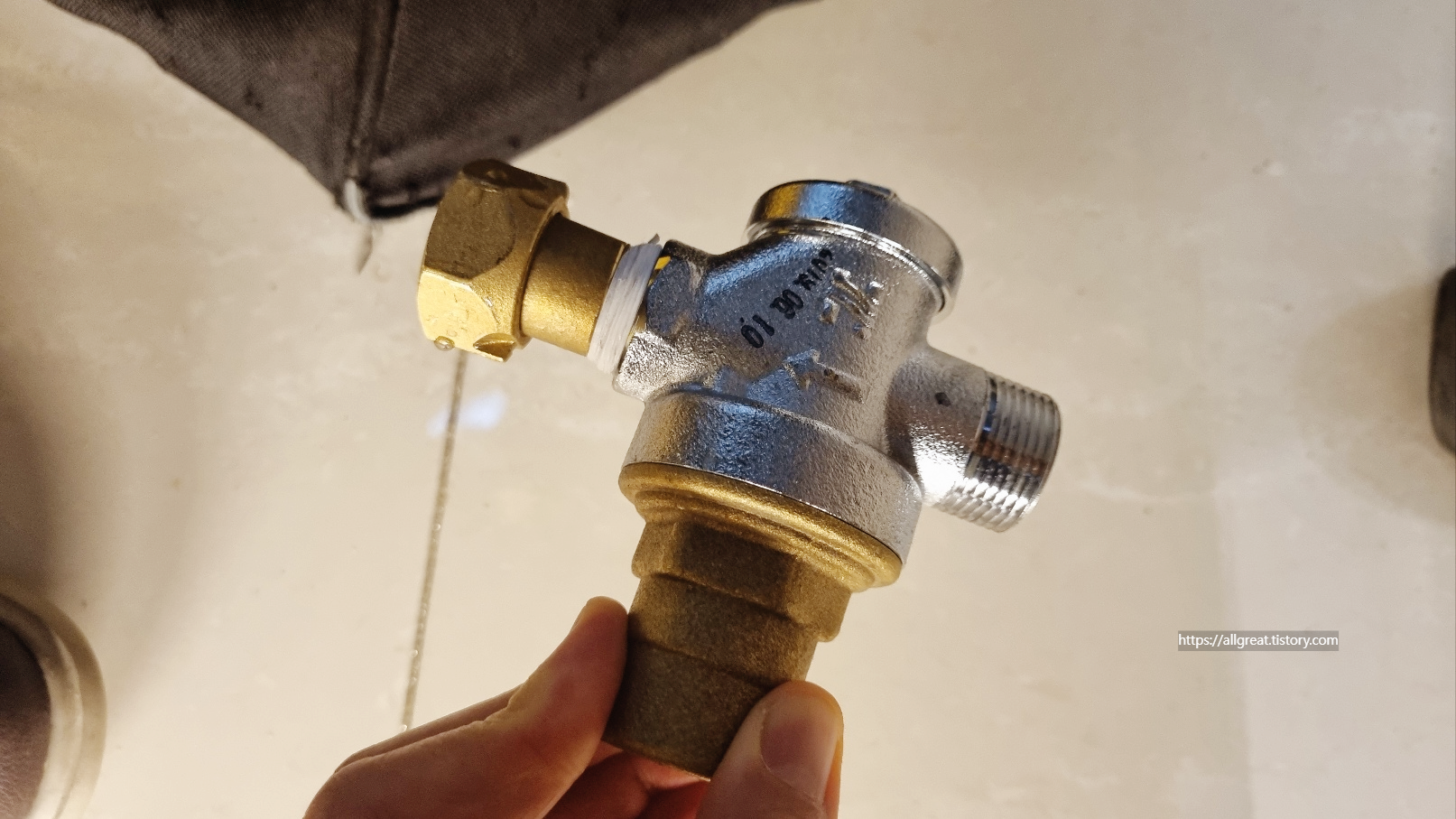 정말 간단하죠. 원인을 찾는 과정이 힘들었을뿐이지, 호환되는 감압밸브만 잘 구입하면 누구나 어렵지 않게 교체 수리를 할 수 있습니다.