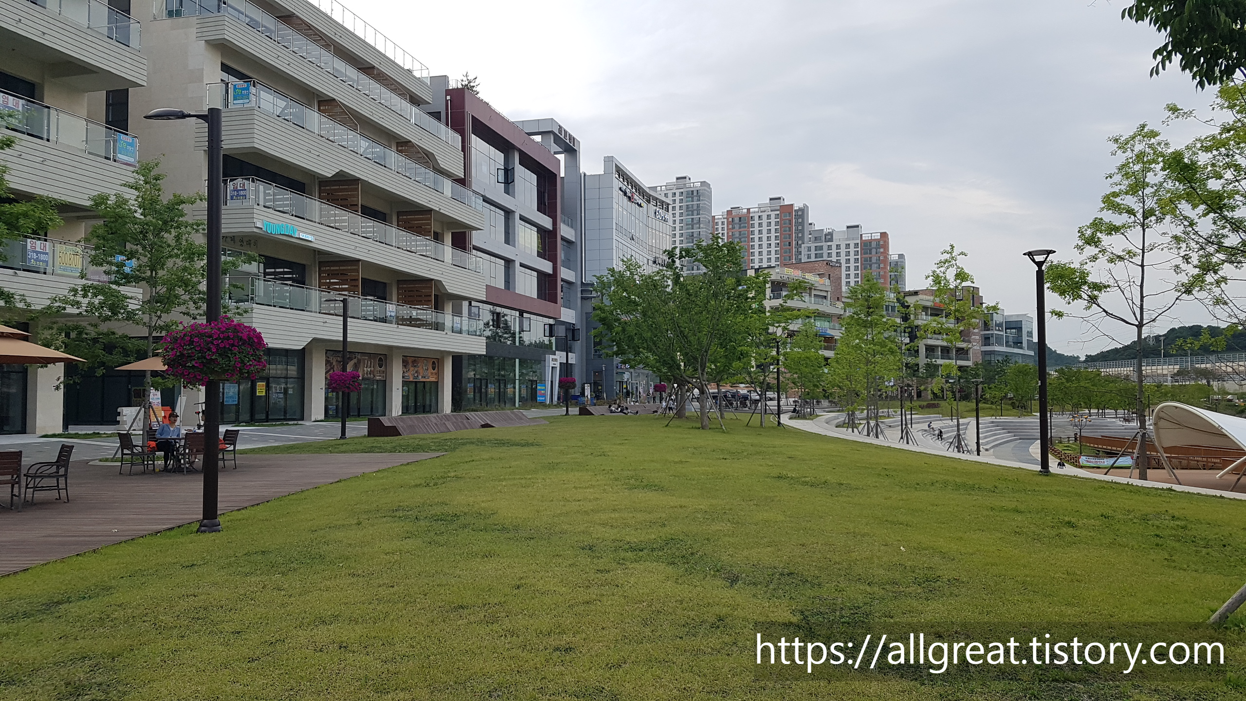 특히, 호수 둘레로 현대적이고 감각적으로 이쁘게 지어진 상가건물들이 줄지어 있는데, 다양한 음식점과 카페 등 편의시설들이 입점해 있다.