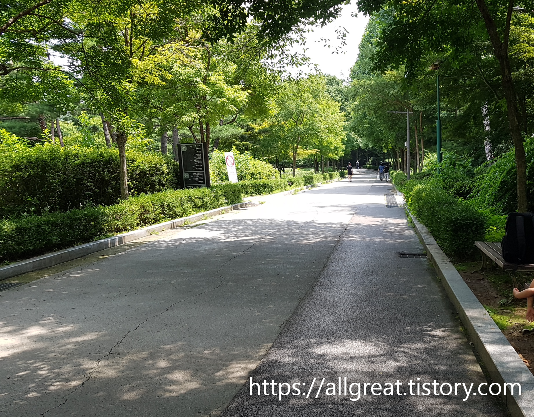 서울 도심속 야외 물놀이장 명소인 서울어린대공원 물놀이장은 정문을 통해서 걸어가는 것이 후문에서 가는 것보다 가깝고 편리하게 찾아갈 수 있다. 오랜 된 거목과 수풀이 우거진 녹음 산책로를 따라서 걷다 보면 약 5분 정도면 야외물놀이장에 다다를 수 있다.