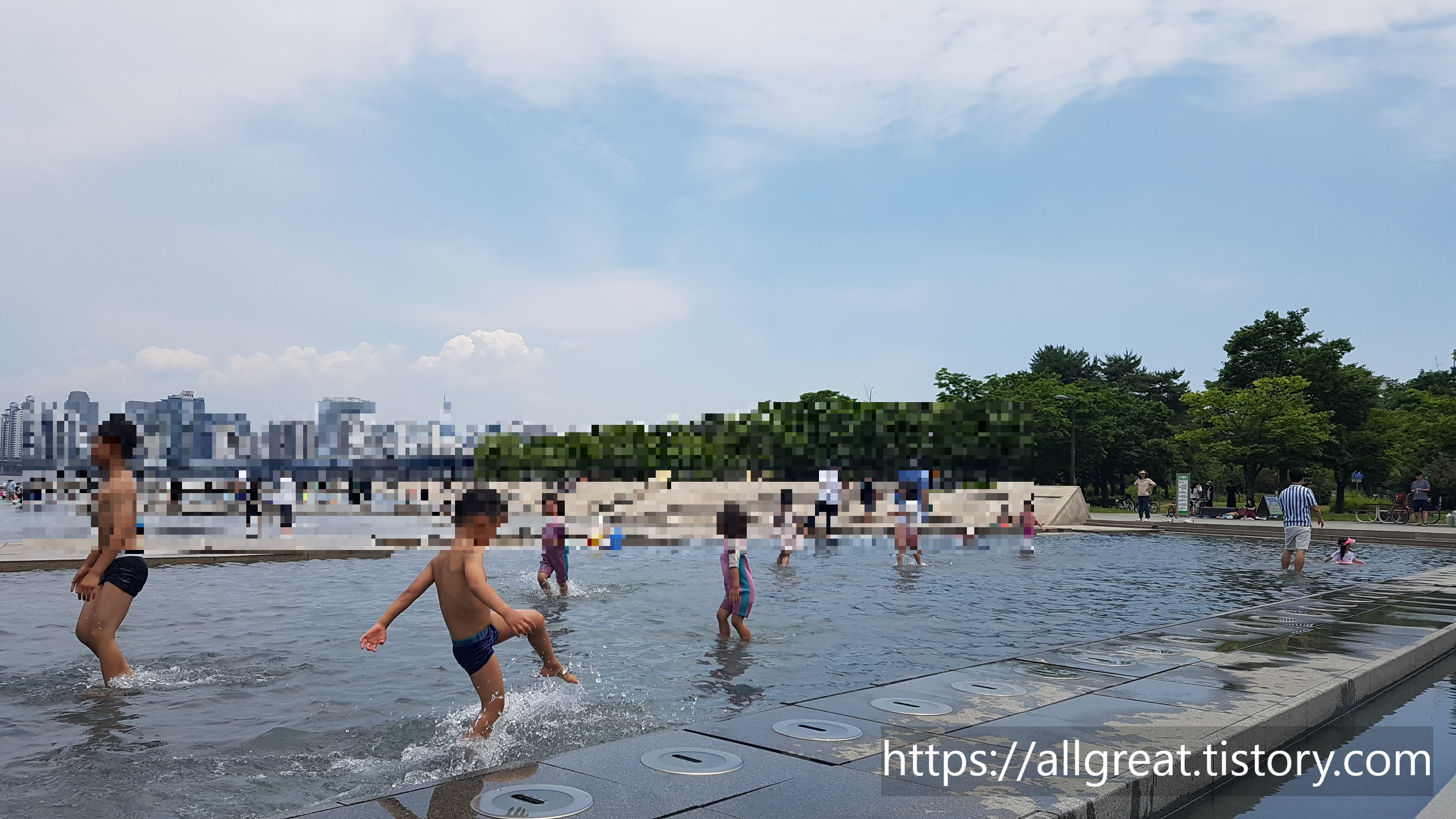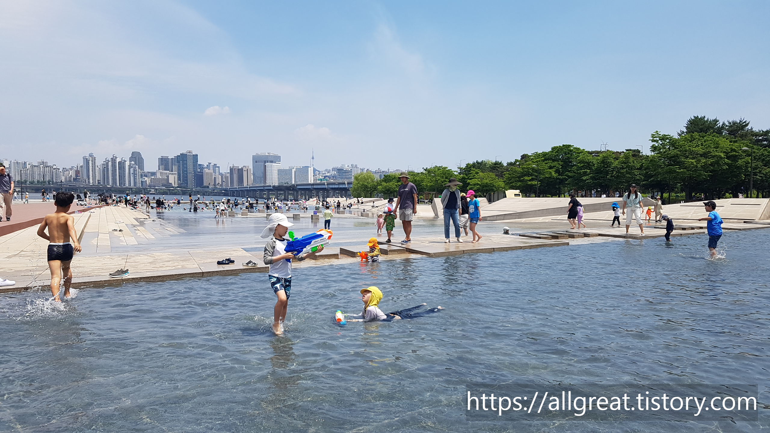 우리나라 수도 서울의 중심을 흐르는 한강. 도심 속 대형 강답게 한강 주변으로는 많은 시민공원과 체육 및 놀이시설들이 즐비해 있다. 특히, 무더운 여름철이면 깨끗한 수질은 기본이고, 넓고 쾌적한 물놀이장을 무료로 마음껏 이용할 수 있는 야외물놀이장이 곳곳에 마련되어 있다. 이 또한 서울시민이 누리는 특권이라고 본다.
