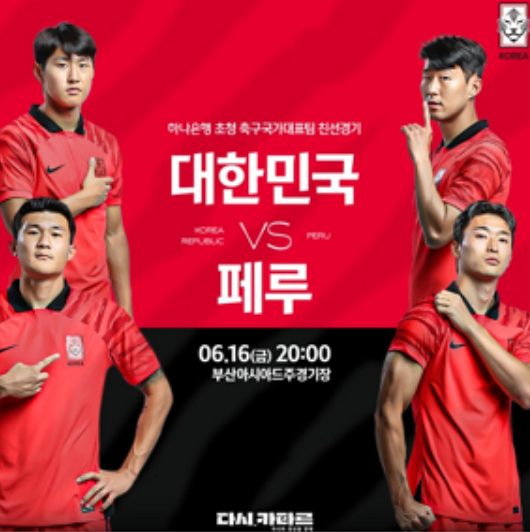 기다리던 국가대표 축구경기가 오늘 6월 16일 저녁 8시에 부산 아시아드주경기장에서 진행된다. 상대팀은 페루(피파랭킹 21위) 국가대표로 우리나라 대한민국(피파 27위)보다 피파랭킹이 상위에 랭크된 남미 강팀이다.