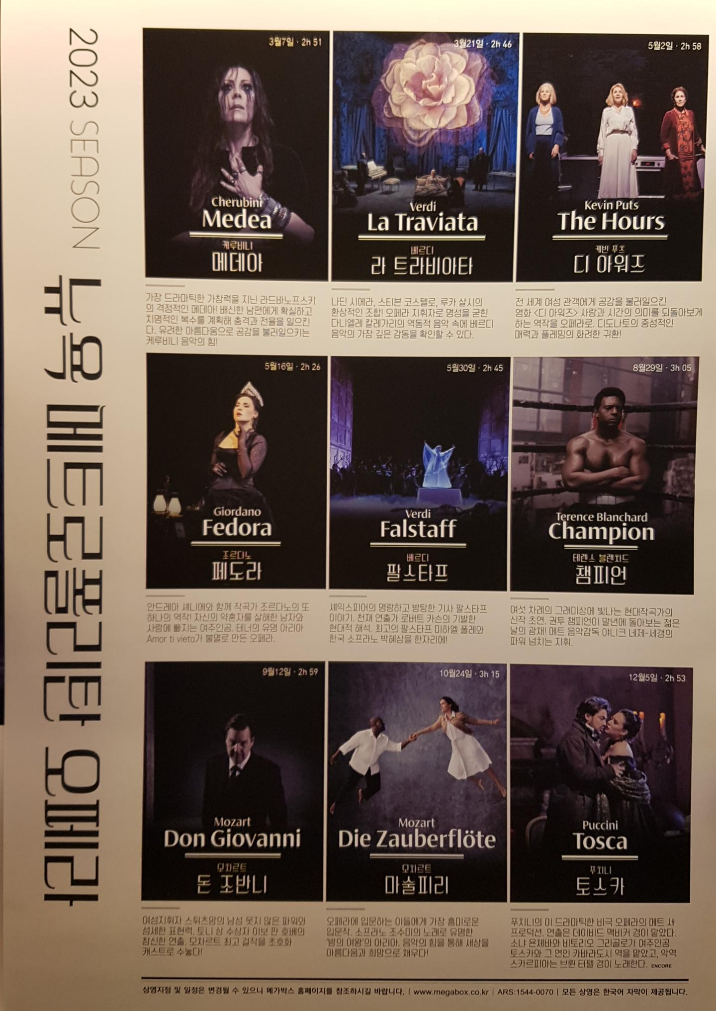 2023년도 뉴욕 메트로폴리탄 오페라 메가박스 상영 정보를 공유한다.