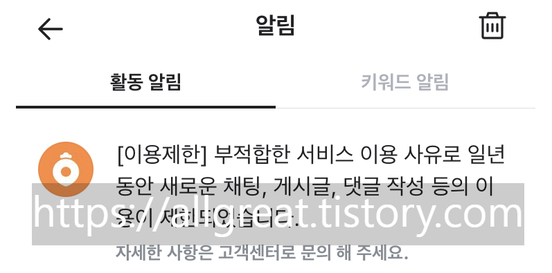 부적합 서비스 이용 사유로 일년동안 당근어플 이용을 제한한다는 내용으로 당근에서 통보를 해왔다.