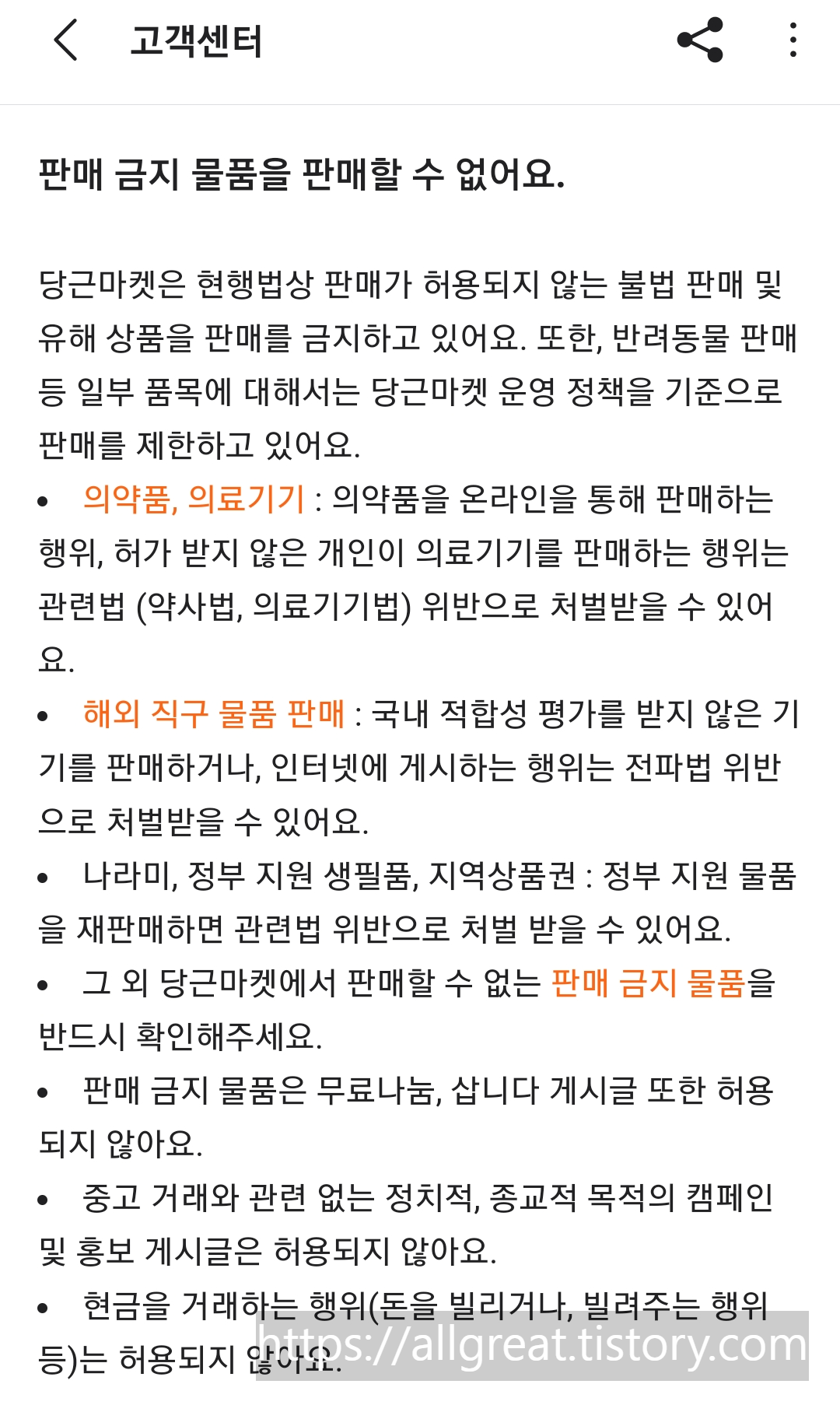 만일 위반사유가 있다고 백 번 양보해서 기억을 더듬어보면, 동일한 물건을 집, 부모님 댁, 회사 총 3개의 지역에서 판매글을 올렸다는 거? 하지만, 이 또한 위반사례 정보를 찾아보니 해당되지 않았다.